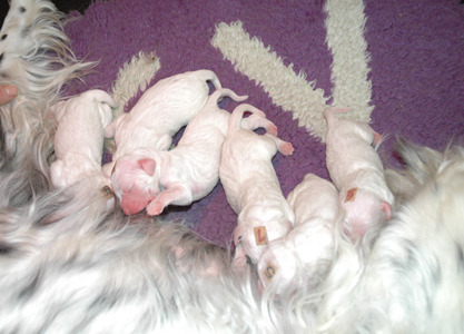 On the 2nd June 2014, the following combination delivered 6 puppies. 3 boys and 3 girls :