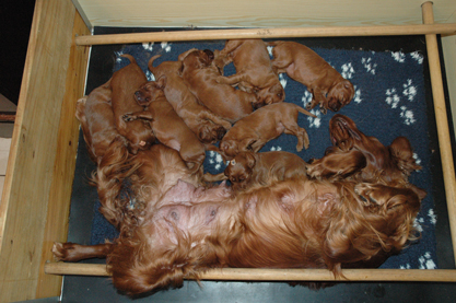 The following combination delivered 9 puppies, 3 boys and 6 girls :